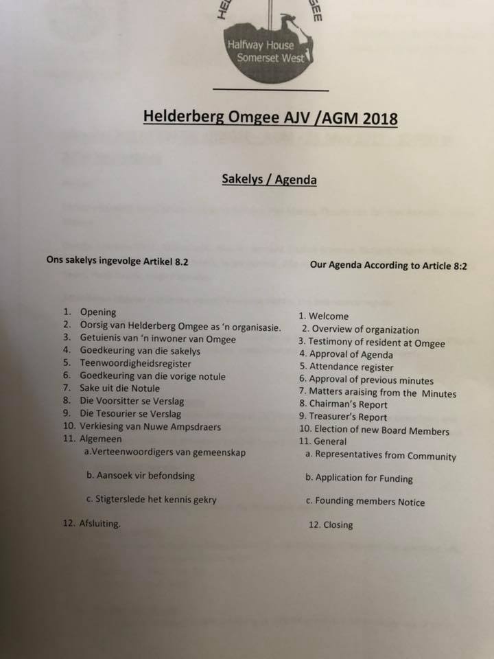 Helderberg Omgee 2018 AGM Agenda