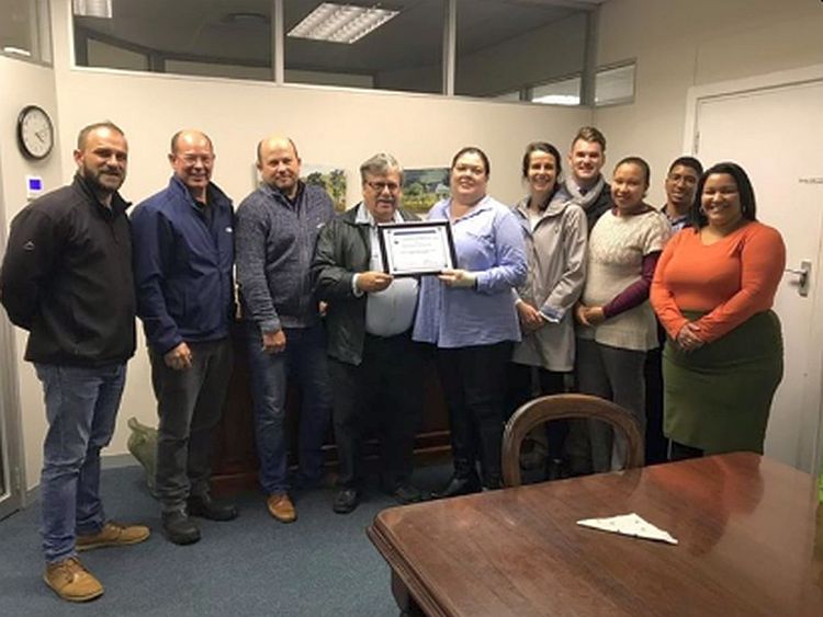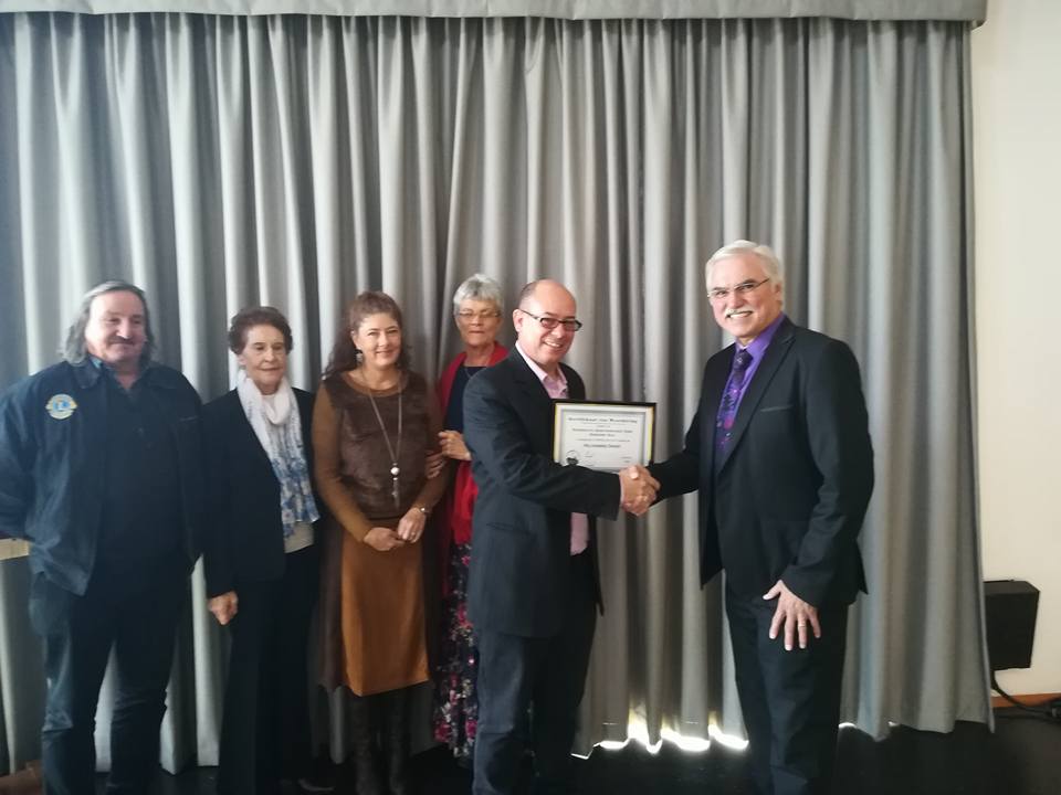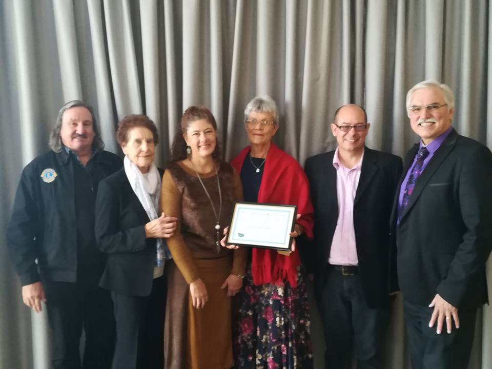 Oorhandiging van sertifikaat aan NG gemeente Strand vir donasie aan Helderberg Omgee